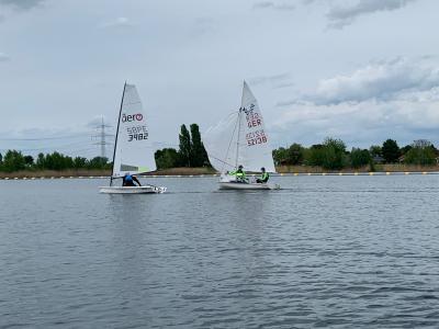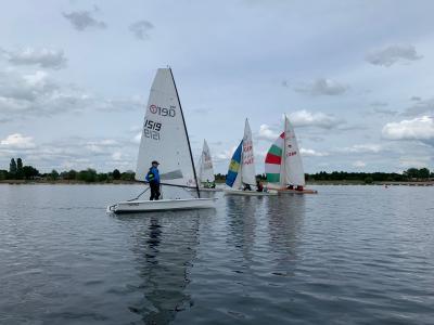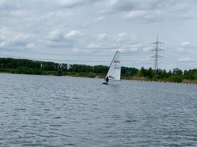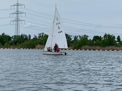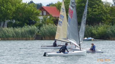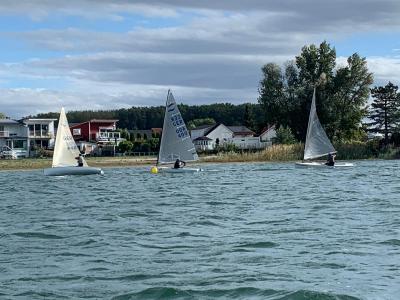 Am Samstag Nachmittag wurde auf dem östlichen Riedsee der erste Lauf erfolgreich bei 1-2 Beaufort gesegelt. Leider kippte dann das Wetter und es regnete. Ein weiterer Lauf konnte auch mangels Wind nicht mehr angesetzt werden.
