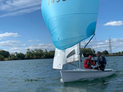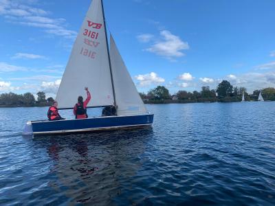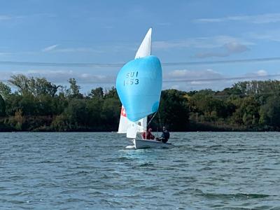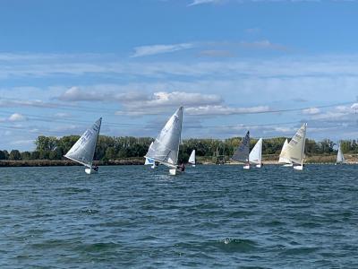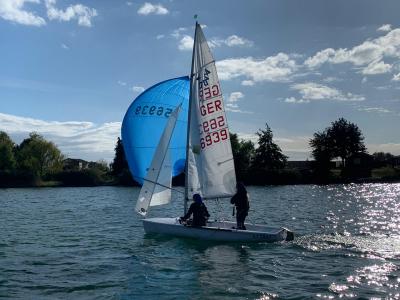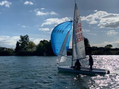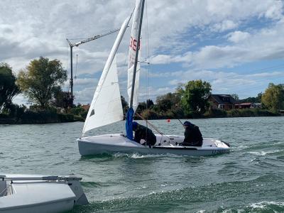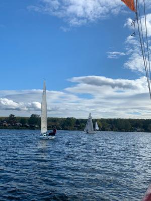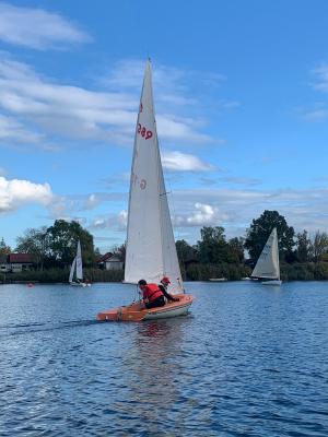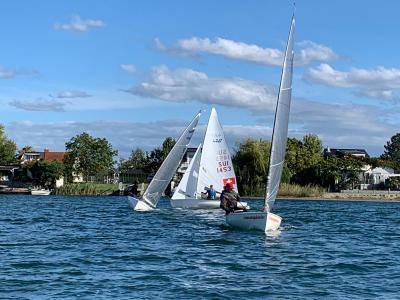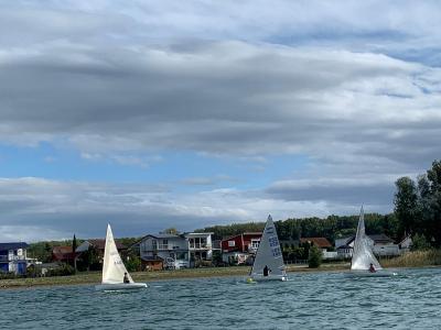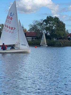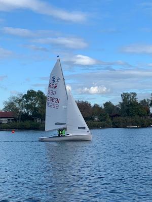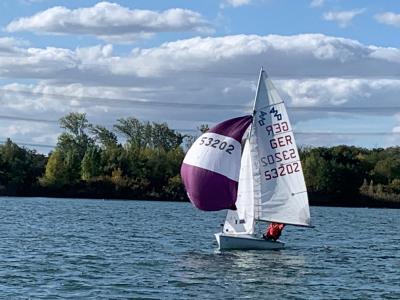 Die diesjährige "Goldener Herbst" Regatta machte ihrem Namen wieder alle Ehre. Besonders am Samstag waren die Temperaturen so mild, dass einige Segler im Shorty auf dem Wasser waren. Auch der Wind spielte mit und es konnten zwei Läufe am Samstag bei schönstem blau-weißen Himmel abgeschlossen werden. Die Wertung erfolgte wieder nach Yardstick, dadurch konnten sich Segler aller Bootsklassen miteinander messen. Von einem Korsar über zwei 420er bis hin zu (natürlich) Finn-Dinghy und sogar einem Opti waren insgesamt 13 Boote mit 18 Seglern auf dem Regatta Kurs.