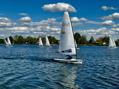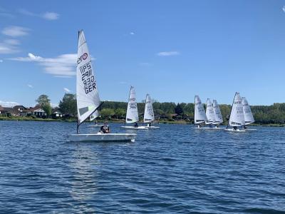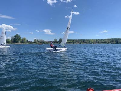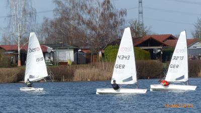 In diesem Jahr konnte seit 2019 erstmals wieder das Ansegeln stattfinden. Bei fast 20°C, 3-4 Bft Wind und bewölktem Himmel, konnte Wettfahrtleiter Marco Colombo am Samstagmittag pünktlich um 14 Uhr die erste Wettfahrt starten. Das Seglerfeld war traditionell gut gemischt, von Finn- über Laser- und Aero-Seglern nahmen auch 2 Opti-Segler und ein 420er Team teil. Insgesamt waren 17 Teilnehmer auf dem See. Die drei gesegelten Wettfahrten fanden alle am Samstag statt, Sonntag konnte dann leider nicht mehr gesegelt werden, da sich eine regnerische Flaute eingestellt hatte.