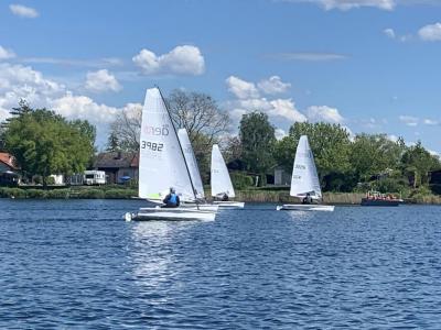 7 Jugendboote gingen an den Start, einige Regattaneulinge waren auch dabei. Insgesamt führten die Finn das Feld in der Wertung an, Stephan Bauer ganz vorne, gefolgt von Jürgen Paffrath und Stephan Gunder. Margaret konnte sich mit Ihrer Europe ins Finn-Feld schieben. Julius Karst ging als erster Jugendsegler mit dem Opti in Ziel, dahinter folgten in der Ergebnisliste seine Eltern mit der First 14. Auch ein 420er Jugendboot mit Steuerfrau Larissa und eine RS Feva mit Thorben waren dabei, sodass ein buntes Bild aus insgesamt 19 Teilnehmern entstand.