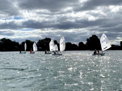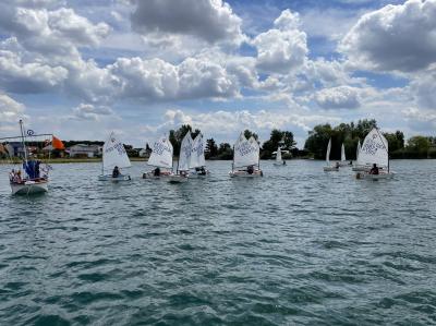 Von den 14 Vereins-Seglern wurden 9 Boote von den Jugendseglern gefahren. 6 Optis, zwei 420er und ein RS Tera Pro waren dabei.