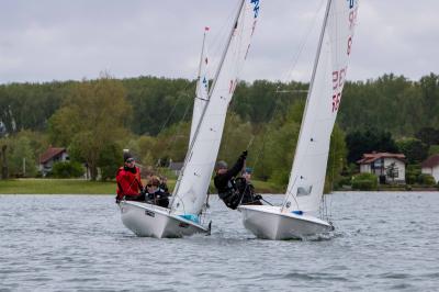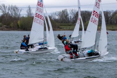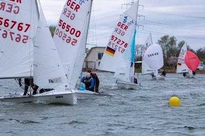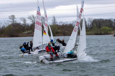 Turbulentes Aprilwetter bei eisigen Temperaturen und böigem Wind gestaltete die 420er Regatta spannend. 14 Boote gingen an den Start und hatten einige Herausforderungen zu meistern.