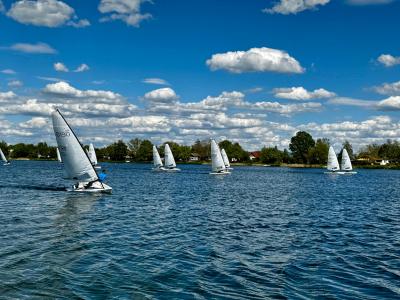 Mit unserer ersten Clubregatta gab es einen tollen Start in die Segelsaison 2025. Noch vor dem ersten Lauf zog unser Wettfahrleiter Marco die Tonnen vom Ostsee auf den Westsee, da sich erst kurz vor dem geplanten Start der Wind richtig einstellte. Es konnten 4 schöne Läufe bei gutem Wind, der durchzogen war von kleinen Böen, gesegelt werden.