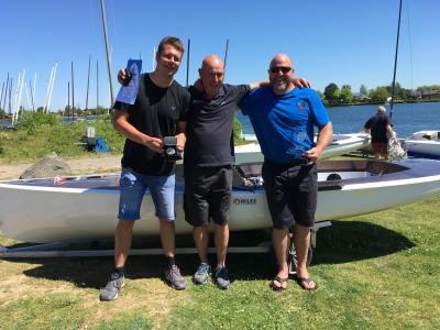 Die Medaillen der diesjährigen Hessenmeisterschaft verlieh der Vorstand des Hessischen Seglerverbands Günther Probst an die anwesenden Sieger Detlef Guminski und David Guminski beide vom Dreieich Segelclub Langen. Dritter wurde Ingo Spory vom Segelclub Westerwald.