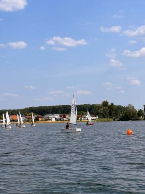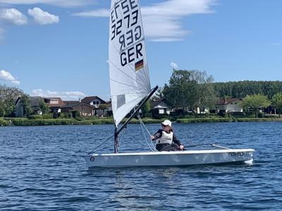 Die Optiregatta in diesem Jahr war ein voller Erfolg! Von den 17 gemeldeten Booten waren Samstag und Sonntag 15 am Start. Der Wind war zunächst trügerisch und erschwerte dem Helfer Team rund um Wettfahrleiter Mike Justen das Auslegen eines Kurses. Passend zur Steuerleutbesprechung stabilisierte sich der Wind auf West-Nord-West und bescherte den Teilnehmern drei Wettfahrten bei Kaiserwetter. Am Sonntag spielte der Wind erneut mit, sodass die vierte von vier ausgeschriebenen Wettfahrten pünktlich um 10 Uhr beginnen konnte. Heute wehte der Wind aus Nord, weshalb die Teilnehmer auf dem alten Teil unseres Sees segelten.