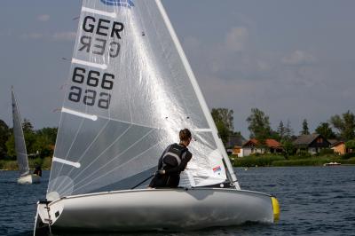 Kaiserwetter mit Windstärken von drei bis vier Beaufort Nordost bestimmten das Regatta-Wochenende am Riedsee in Biblis. Jürgen Eiermann vom Segelverein Biblis nahm mit seinem Gesamtsieg die Ranglisten Punkte für die Deutsche Meisterschaft mit. Gefolgt von Klaus Reffelmann vom Westfälischen Yachtclub Delecke und Detlev Guminski vom Dreieich Segelclub Langen.