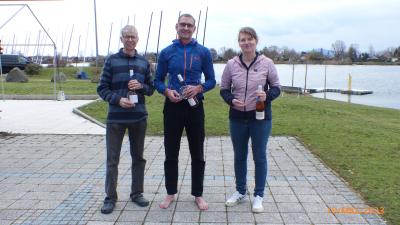 In der Regatta konnte sich Maximilian Müller im Finn gegen seine Vereinskollegen mit zwei ersten Plätzen durchsetzen und wurde nur einmal aufgrund der Yardstick-Wertung von einem Opti überholt. Den 2. Platz belegte Sebastian Karst mit seinem RS Aero 7, gefolgt von Georg Feurer auf dem 3. Platz im Finn Dinghy. Die drei Segler verzichteten während der Siegerehrung auf ihre Pokale und reichten sie weiter an die vier Teilnehmer aus der Segeljugend. Dies kam bei den Kindern natürlich super an und noch besser wurde es, als sie in den Pokalen Gummibärchen fanden.