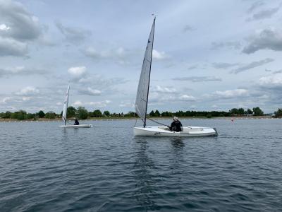 In diesem Jahr konnte seit 2019 erstmals wieder das Ansegeln stattfinden. Bei fast 20°C, 3-4 Bft Wind und bewölktem Himmel, konnte Wettfahrtleiter Marco Colombo am Samstagmittag pünktlich um 14 Uhr die erste Wettfahrt starten. Das Seglerfeld war traditionell gut gemischt, von Finn- über Laser- und Aero-Seglern nahmen auch 2 Opti-Segler und ein 420er Team teil. Insgesamt waren 17 Teilnehmer auf dem See. Die drei gesegelten Wettfahrten fanden alle am Samstag statt, Sonntag konnte dann leider nicht mehr gesegelt werden, da sich eine regnerische Flaute eingestellt hatte.