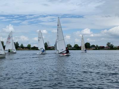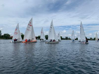 7 Jugendboote gingen an den Start, einige Regattaneulinge waren auch dabei. Insgesamt führten die Finn das Feld in der Wertung an, Stephan Bauer ganz vorne, gefolgt von Jürgen Paffrath und Stephan Gunder. Margaret konnte sich mit Ihrer Europe ins Finn-Feld schieben. Julius Karst ging als erster Jugendsegler mit dem Opti in Ziel, dahinter folgten in der Ergebnisliste seine Eltern mit der First 14. Auch ein 420er Jugendboot mit Steuerfrau Larissa und eine RS Feva mit Thorben waren dabei, sodass ein buntes Bild aus insgesamt 19 Teilnehmern entstand.