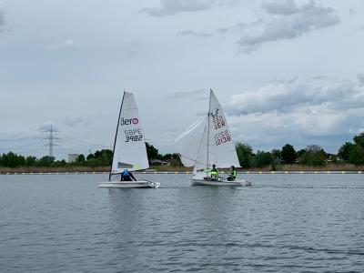 Mit unserer ersten Clubregatta gab es einen tollen Start in die Segelsaison 2025. Noch vor dem ersten Lauf zog unser Wettfahrleiter Marco die Tonnen vom Ostsee auf den Westsee, da sich erst kurz vor dem geplanten Start der Wind richtig einstellte. Es konnten 4 schöne Läufe bei gutem Wind, der durchzogen war von kleinen Böen, gesegelt werden.